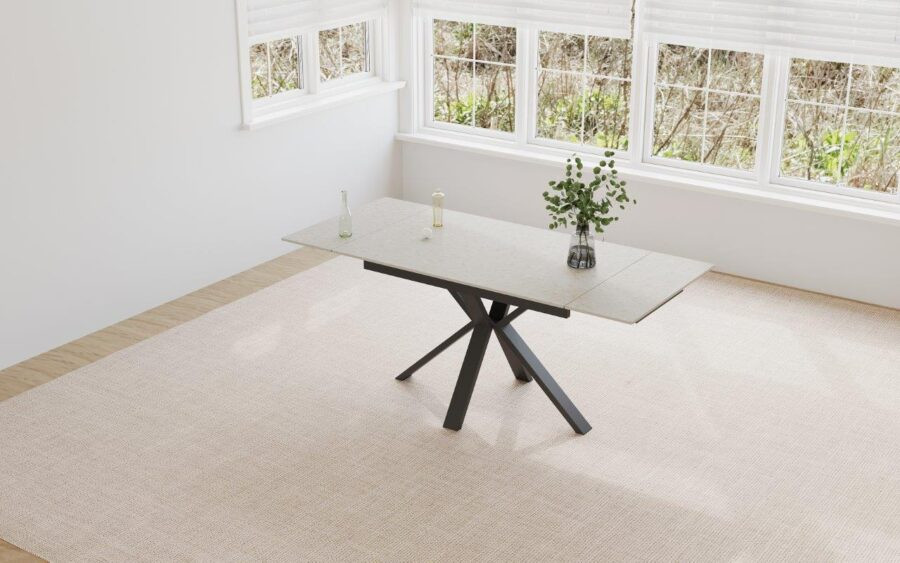 La Table "CALLIMERO" séduit par son design moderne et sa grande fonctionnalité. Son plateau en céramique, résistant et facile d’entretien, en fait une table idéale pour un usage quotidien.