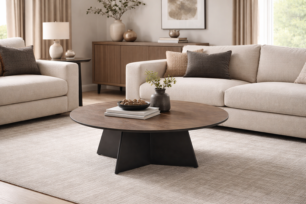 Découvre l'élégance avec cette Table de Salon Ronde "CERATA". Avec un beau diamètre de 80cm et grâce à son plateau en céramique, elle est un choix idéal pour une utilisation quotidienne et intensive.