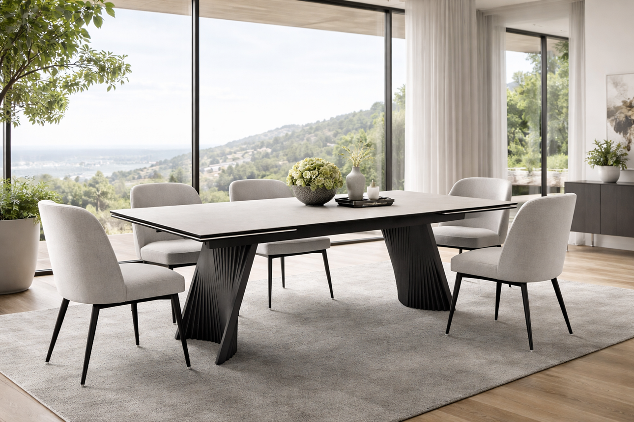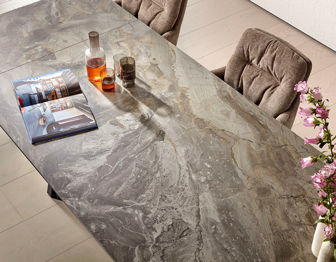 Découvrez notre belle table en Céramique "CERATA" qui est une table de grande taille. 200 x 98 cm fermée et 250 ou 300 x 98 cm lorsque le(s) allonge(s) sont dépoloyées.