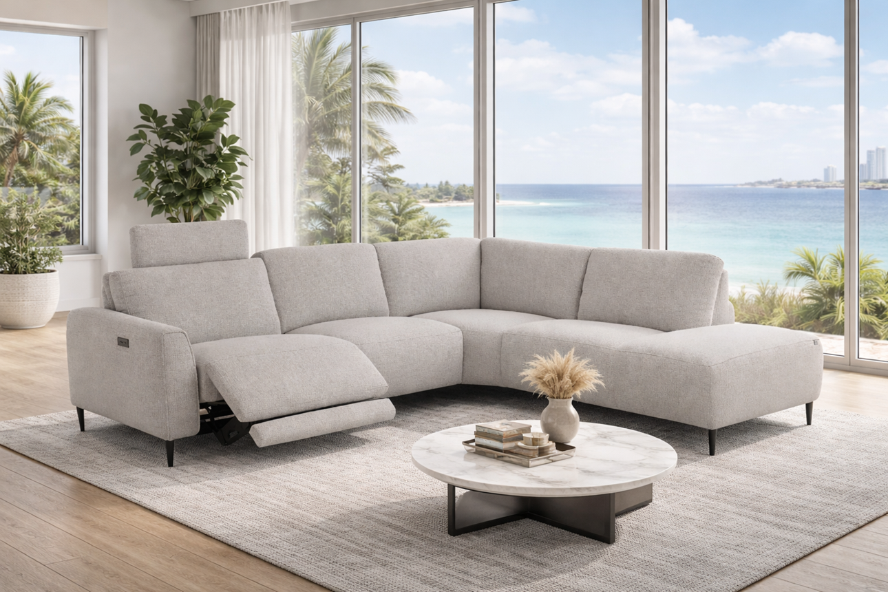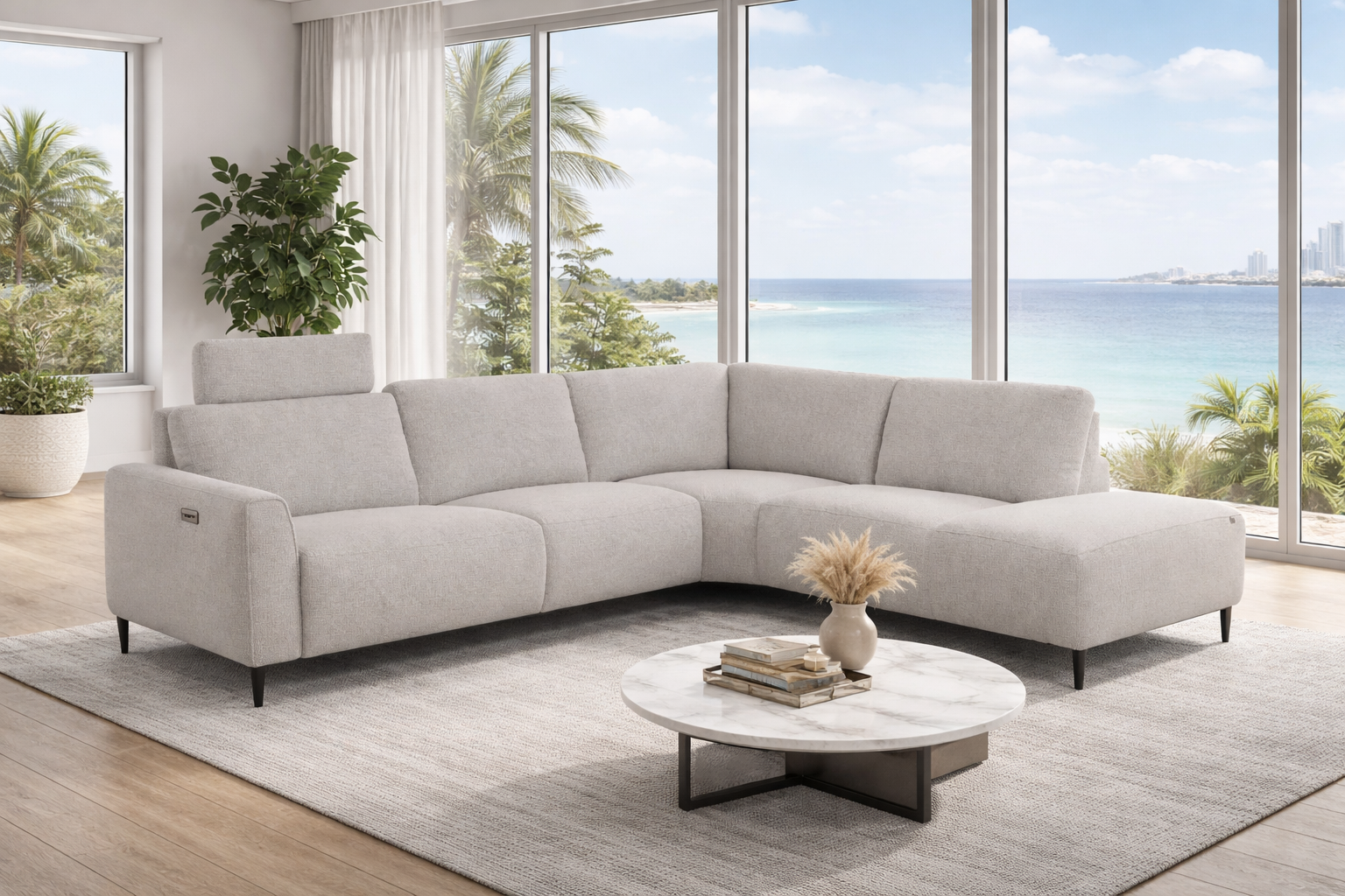 Notre Salon d'Angle "DION" séduit par son design contemporain aux lignes épurées et son confort haut de gamme. Doté d'une position relax motorisée avec port USB, il offre une expérience de détente optimale. Sa conception modulable, ses assises généreuses et ses finitions soignées en font un choix idéal pour un intérieur moderne et élégant.