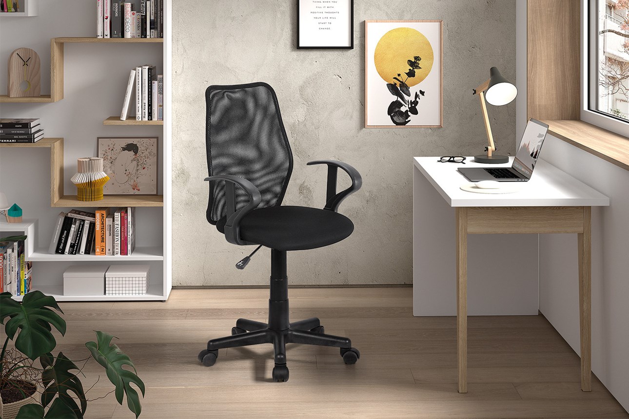 Alliant confort et praticité, cette chaise de bureau réglable en hauteur grâce à son vérin à gaz s’adapte facilement à votre posture. Sa structure métallique offre stabilité et robustesse, tandis que la base et les accoudoirs en plastique garantissent légèreté et entretien facile. Son revêtement en tissu maillé respirant assure une excellente aération et un confort durable, idéal pour le travail quotidien, même par temps chaud.