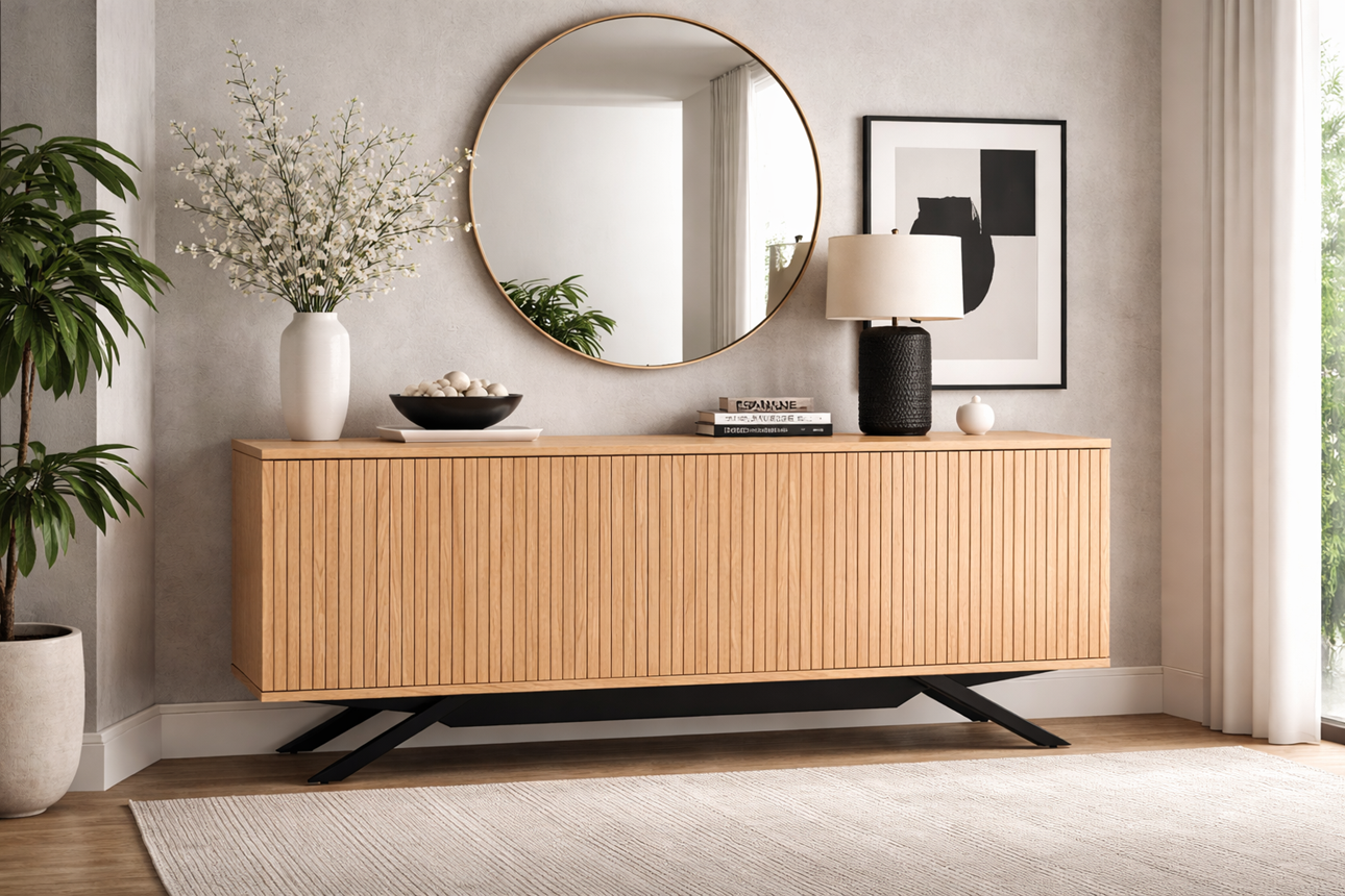 Le Bahut "NAPOLI" incarne une élégance contemporaine alliée à un savoir-faire intemporel. Conçu en chêne massif, il se distingue par sa structure à lattes, signature forte de la collection, qui met en valeur la beauté naturelle du bois et apporte chaleur et texture à votre intérieur.