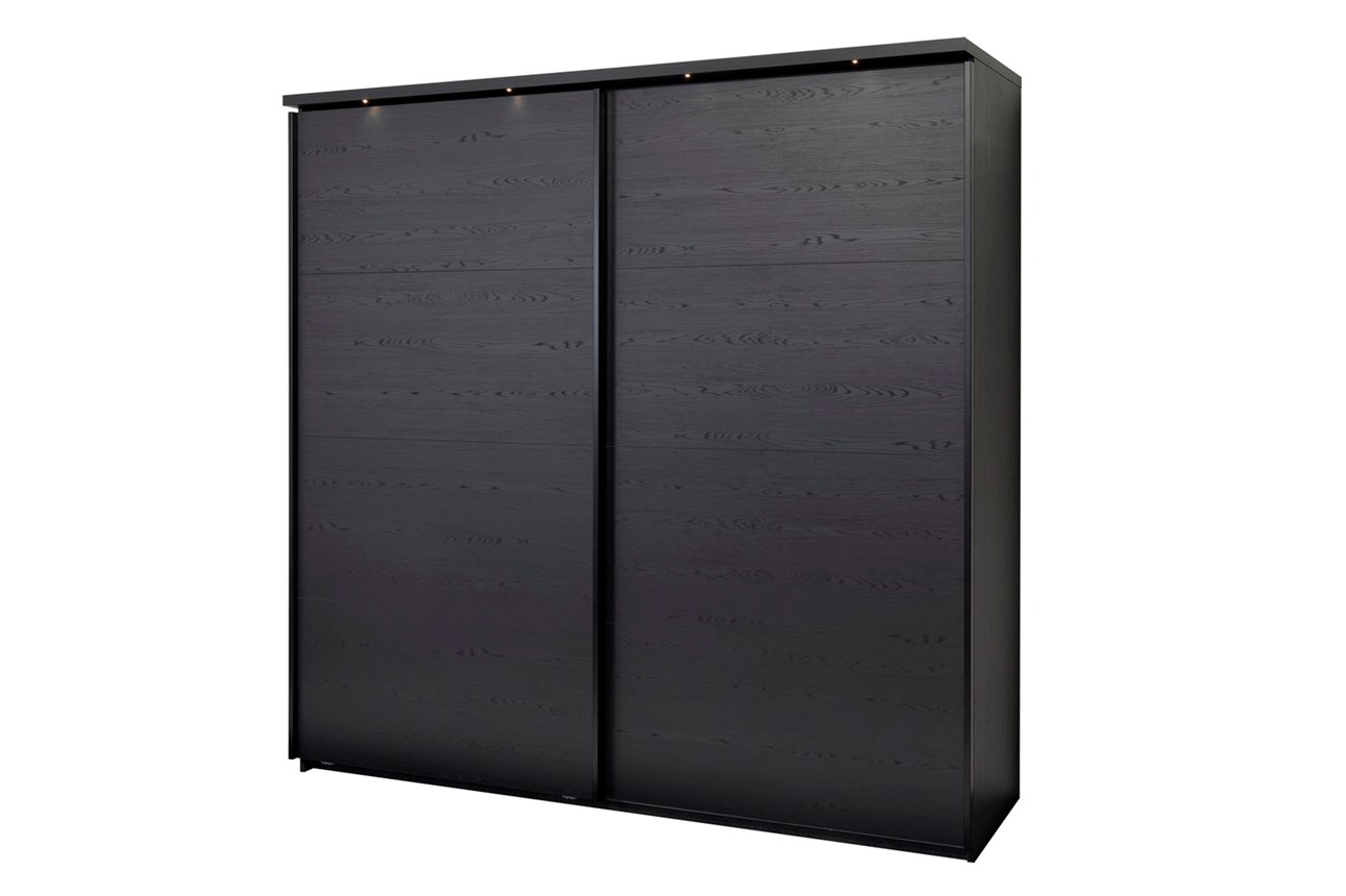 Découvrez la Garde-Robe "ROSIE" 2 Portes Coulissantes. Le Décor couleur Nox donne un effet très industriel à l'armoire. Cette garde-robe vous offrira assurement le rangement dont vous avez besoin. Vous pouvez demander votre garde-robe avec portes pleines ou avec porte miroir.