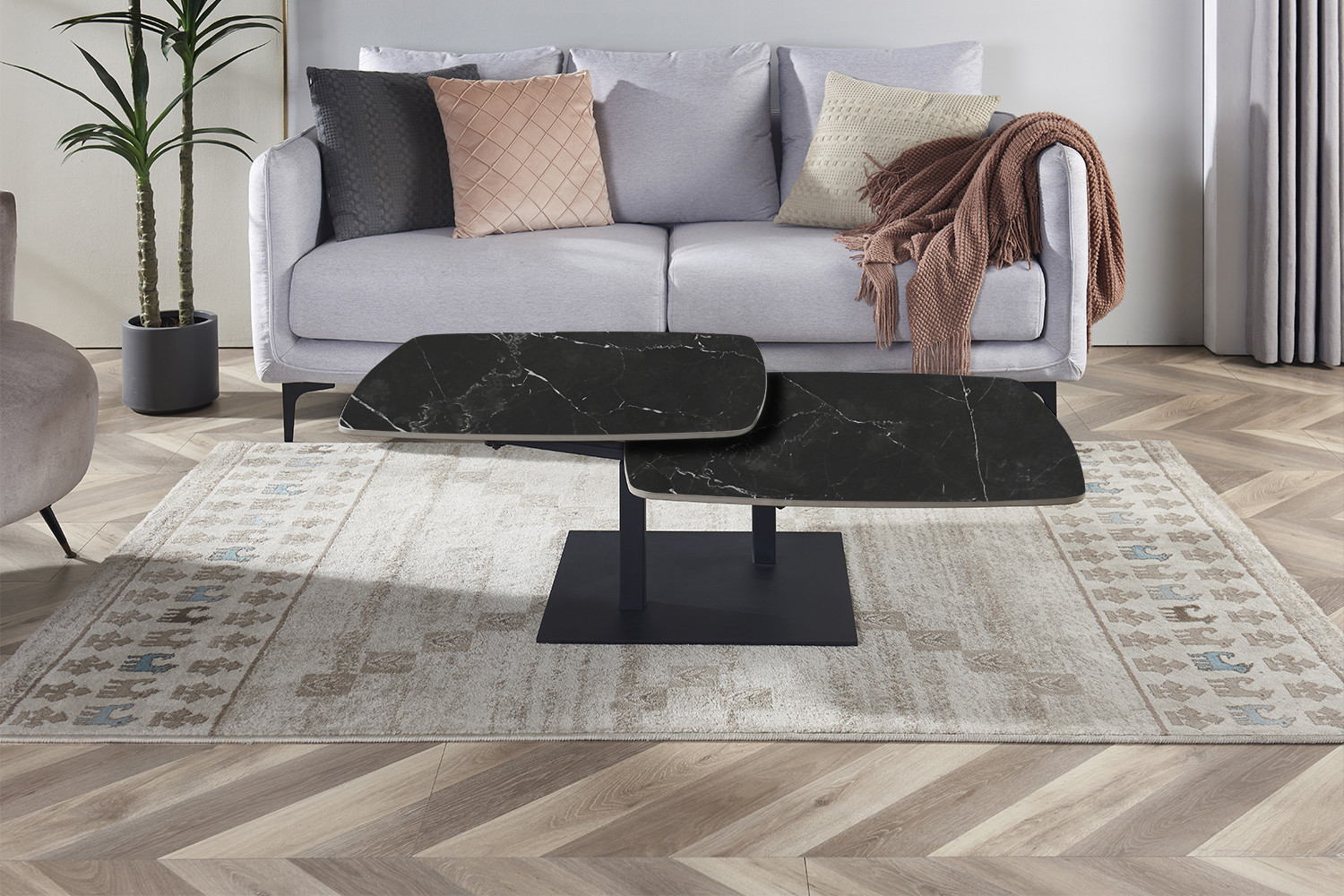 Le plateau en Sintered Stone combine élégance et praticité au quotidien : ultra-résistant aux rayures, à la chaleur et aux taches, il est parfait pour un usage intensif. Son entretien est simple : un chiffon doux légèrement humide et un détergent délicat suffisent. Évitez simplement les produits abrasifs.